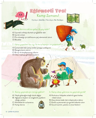 D) Kamp alanına D) Sucuk kızartılır, patates ve mısır közlenir