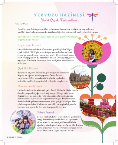 çiçekler. Birçok ülke çiçeklerin bu doğal güzelliğinden yararlanarak çiçek festivalleri yapıyor.